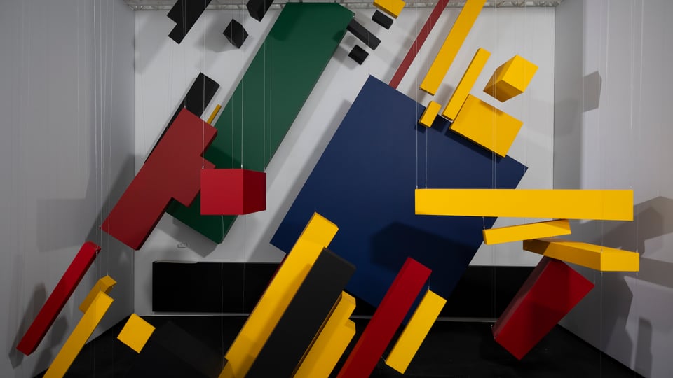 Уявіть, що кольорові площини Малевича зійшли з полотна й зависли в повітрі. Саме такий вигляд має інсталяція «У серці Малевича» на Ukraine WOW.