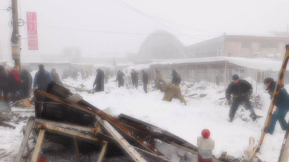 Очевидці заявили, що дах торгового ряду впав під вагою снігу. У постраждалих забої голови, у деяких — підозри на перелом рук та ніг.