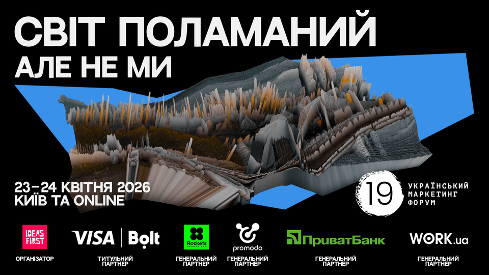 Щороку Український маркетинг-форум шукає для своїх рекламних комунікацій креативні ідеї, які підтримують ключову тему події. У 2026-му важливими для професійної маркетингової спільноти є питання, як жити та працювати у світі, що поламався, як продовжувати рух, коли звичні моделі та правила не діють.
