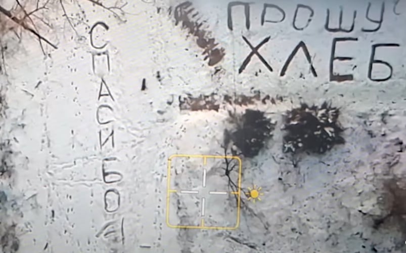 На Донеччині в Костянтинівці місцева мешканка залишила на снігу напис: «Прошу хліба». Оператор БпЛА, на позивний Малюк, побачив це з безпілотника й відреагував на прохання.