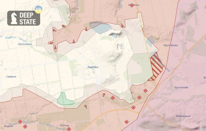 The map maintained by the DeepState monitoring group shows that Russian forces have been closing the gap around Avdiivka in recent days, advancing east of Lastochkyne and south of the city since February 15. According to the latest updates the occupiers have seized the Donetsk filtering station and advanced near Nevelske.