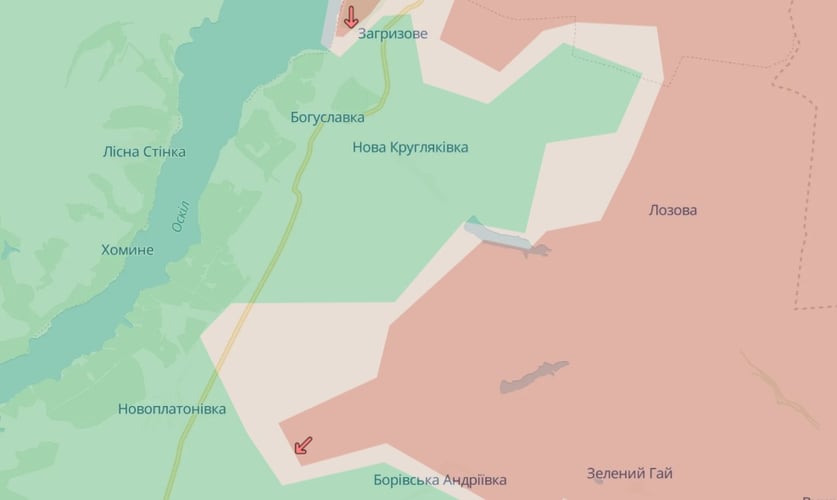 Russian forces operated north of Novoplatonivka in Kharkiv Oblast — toward Nova Kruhliakivka and Zahryzove. The breakthrough attempt involved about 50 soldiers.