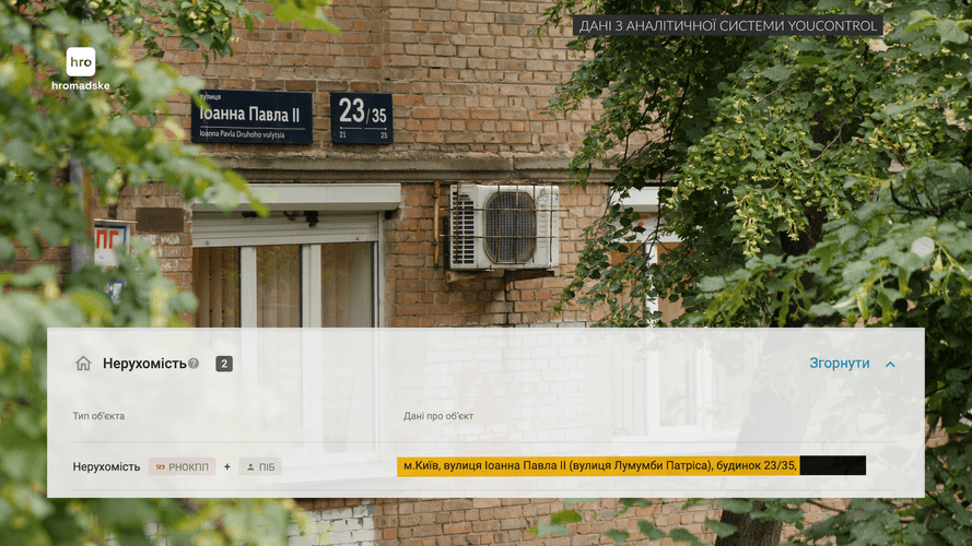 Квартиру придбала Ніна Радченко. Як ми зʼясували, це 71-річна жителька села Кошманівка на Полтавщині. У грудні 2022-го вона отримала тисячу гривень матеріальної допомоги від сільради. І тут такі дива. Мабуть, пенсіонерка настільки вдало інвестувала отриману тисячу, що вже у 2024-му, за даними YouControl, придбала не лише квартиру за понад 8 мільйонів, а й AUDI Q3 2016 року випуску — щонайменше за 15 тисяч доларів.