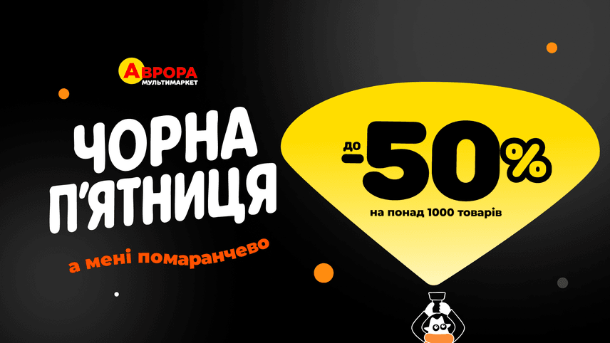 Під час Чорної п’ятниці в магазинах «Аврора», що триватиме з 28 по 30 листопада, на вас чекають знижки до -50% на понад 1000 товарів, позначених помаранчевими цінниками. Серед акційних пропозицій — засоби для краси та догляду, побутова хімія, товари для гігієни та сезонні пропозиції.