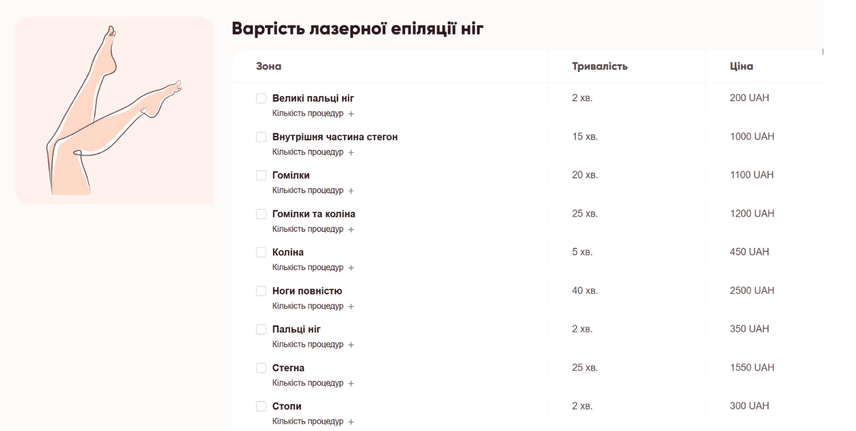 Скільки коштує лазерна епіляція ніг в Україні?