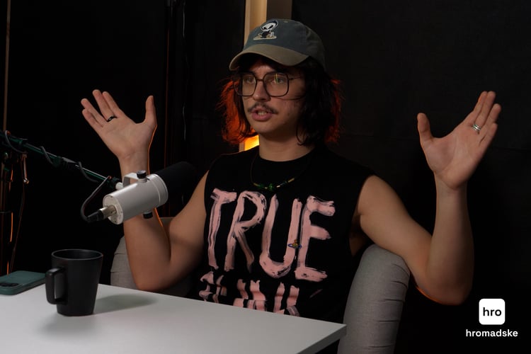 Я приїхав до Європи, коли мені було 17 років. На початку повномасштабної війни було дуже багато мітингів, дуже така сильна підтримка була європейська. І на одному з таких мітингів я познайомився з тепер моєю дуже хорошою подругою Марією Лісовською. Вона тоді ще навчалася, здається, на другому курсі Київського університету мистецтв, на режисурі.