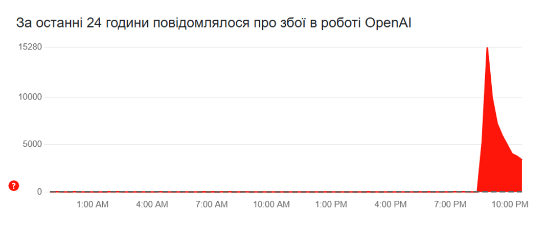 У компанії-розробника чат-бота підтвердили збій та повідомили, що мають проблему з «високим рівнем» помилок у ChatGPT, API та Sora.