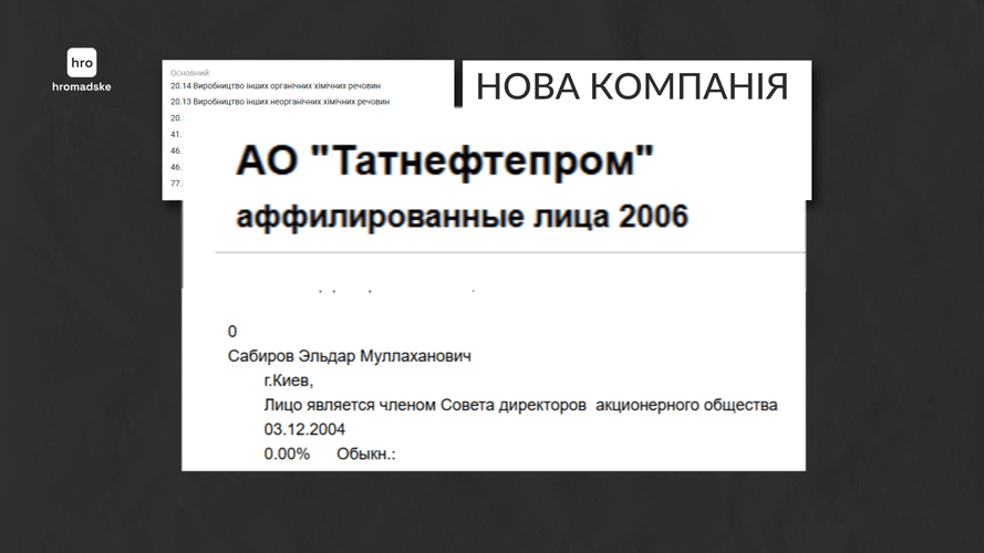 Ще 24,5% у цій самій компанії належать Ельдару Сабірову, який був директором одного з департаментів у Міністерстві палива й енергетики при міністрі Юрію Бойку в уряді Януковича. Він же раніше був помічником Юрія Бойка. А заодно — колишнім членом ради директорів російського «Татнефтепрома». Це не дивно, бо Сабіров родом із росії. Його батьки мешкали там і досі закликають в російській соцмережі «Однокласники» ставити лайки путіну, поки син залучений до будівництва стратегічного об'єкта української промисловості.