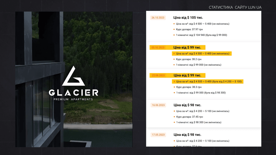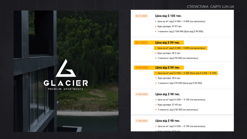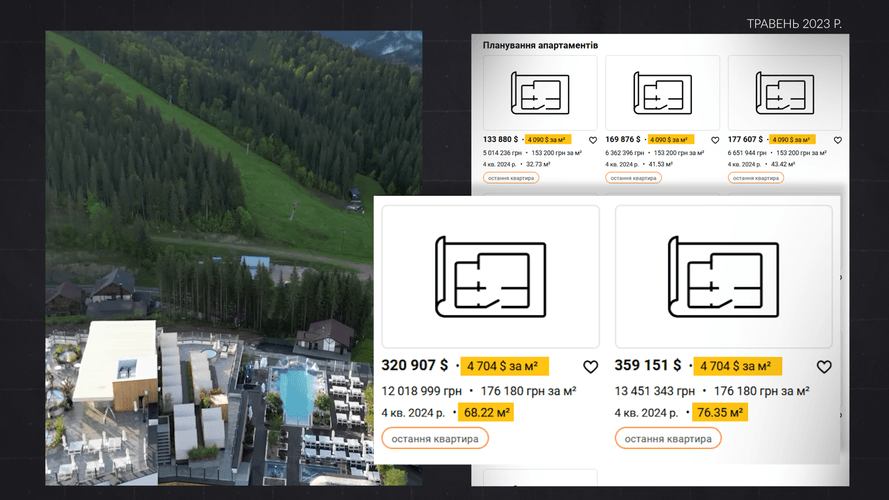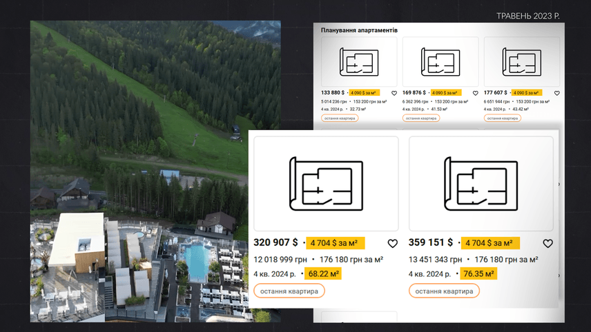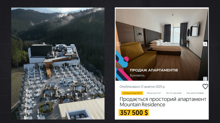 А вже у вересні 2023-го, саме того місяця, коли прокурор інвестував в цей преміальний готель, м² в Mountain Residence коштував щонайменше 4350 доларів.