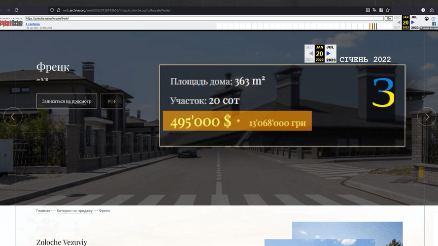 Нерухомість у цьому котеджному містечку батько судді придбав у травні 2019-го. Ми не знайшли, скільки тоді тут коштували такі котеджі. Але на початку 2022-го, перед повномасштабним вторгненням, таке саме житло, але в сусідньому районі Zoloche, на сайті забудовника продавали за майже пів мільйона доларів. І це ціна без ремонту.