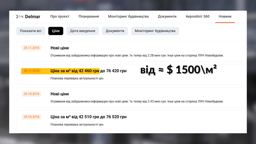 Квадратний метр житлової нерухомості в цьому ЖК того самого місяця коштував щонайменше 1500 доларів. Отже, ринкова вартість об’єкта мала б становити майже 740 тисяч доларів.