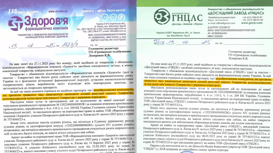 У групі компаній «Здоров’я» на запит hromadske відповіли, що кримінальне провадження, яке розпочала поліція щодо попередніх власників, — це наслідок чуток, які розповсюджують недобросовісні конкуренти. А дії правоохоронців там назвали протиправними.