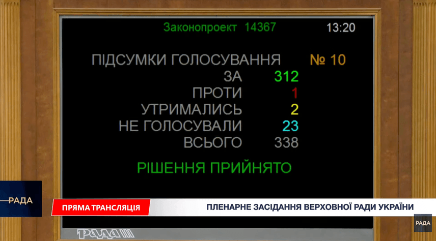 Доповнено о 13:21. Рада також проголосувала за продовження мобілізації. Відповідне рішення підтримали 312 депутатів.