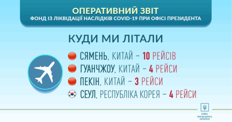 «У нас фактично було три види вантажів. Перший — це те, що закуповував і привозив фонд в інтересах наших лікарів, поліцейських. За ці літаки сплачував всі кошти фонд. Другий вид вантажів — це ті ж самі засоби захисту та медичне обладнання, які закуповував бізнес і передавав до лікарень або централізовано до Міністерства охорони здоров’я. За ці поставки також сплачував фонд», — зазначив заступник керівника ОП.
