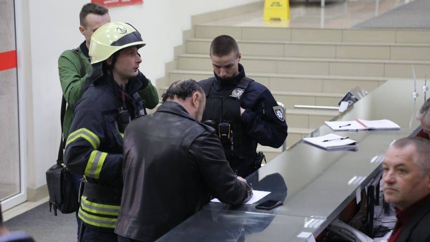Як повідомляє кореспондент, поліція та рятувальники ДСНС прибули для перевірки повідомлення про замінування. Прес-конференція Манжосова не почалася.