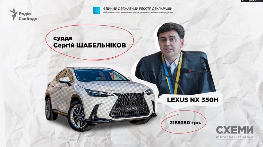 Суддя Харківського апеляційного суду Сергій Шабельніков торіку грудні 2022 року став власником LEXUS NX 350H 2022 року випуску. Його вартість —2 млн 185 тисяч грн. Шабельніков коротко заявив, що купив авто за власні гроші. Він додав, що йому «у Харкові потрібна надійна автівка» і що він «із колегами допомагає ЗСУ».