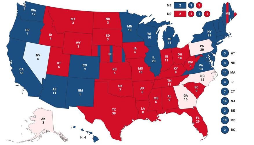 Якщо орієнтуватися на підрахунки прихильного до консерваторів Fox News, невизначеною залишається ситуація в штатах Невада, Пенсильванія, Північна Кароліна та Джорджія (див. карту вище). А прихильний до демократів CNN додає до цього переліку ще й Аризону.