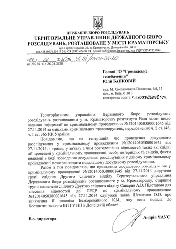 Про це повідомила нам їхня адвокатка Анна Брицька. Вона також зазначила, що Військова прокуратура, яка раніше розслідувала цю справу, передала її до Державного бюро розслідувань. Таке hromadske підтвердили і у ДБР у відповідь на інформаційний запит. Досудовим розслідування займається група слідчих Територіального управління ДБР у Краматорську.