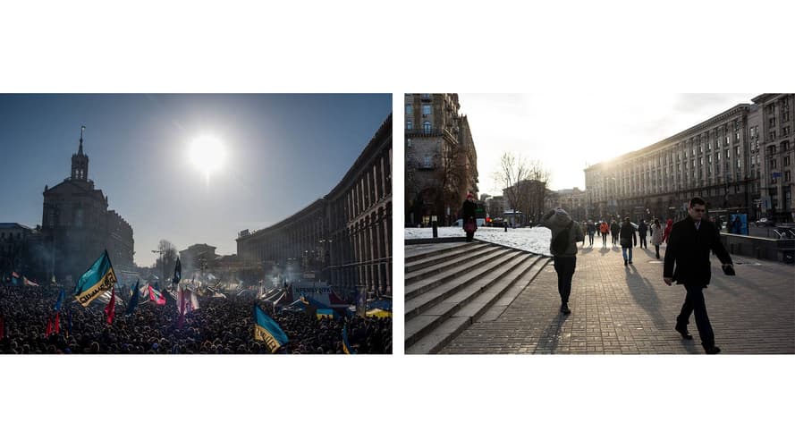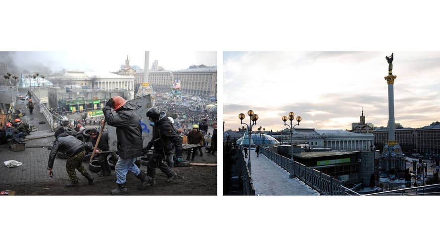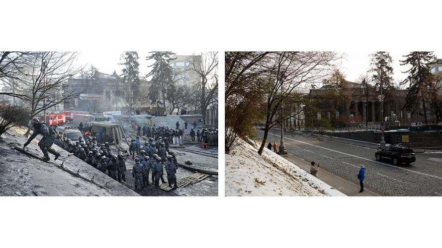 Якими були ці місця тоді, і якими є тепер, за 5 років після початку Революції Гідності — у фотопроекті Громадського.