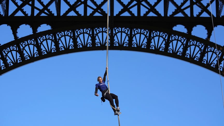 Француженка побила світовий рекорд, піднявшись канатом на Ейфелеву вежу. Так вона збирала гроші для онкохворих