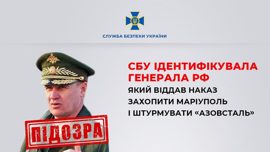 Українські правоохоронці ідентифікували генерал—лейтенанта росії, який наказав окупаційним військам захопити Маріуполь та штурмувати завод «Азовсталь», де перебували і цивільні, і військові.