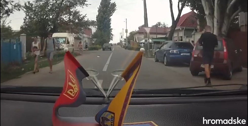 Автівку зафіксував реєстратор на автомобілі побратимів Олешка за кілька хвилин до вбивства.