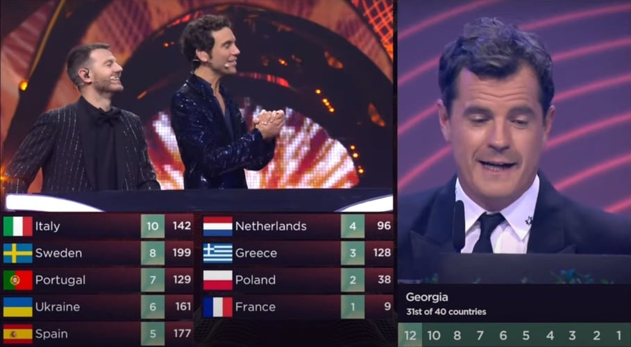 Через технічні проблеми бали від Грузії оголошував один із керівників пісенного конкурсу Мартін Остердал. Так, на таблиці з балами, яку оприлюднили організатори «Євробачення», Україна отримала 6 балів, а перше місце віддали Великій Британії.