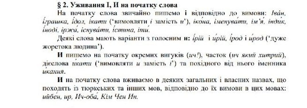 «У правописі, який називається Скрипниківським (1928 року), була «и» на початку слова перед «н»: инший, иноді. І були такі думки повернути це правило: «репресований» правопис, треба відновити справедливість, людей, які цей правопис творили, було знищено». Але люди цього не сприйняли. І в цій редакції в нас залишилося це, як і було. В нас є слова на «и» в цьому правописі: ич, икати, ирій, ирод. Ніякого «индика», «гиндика» немає«, — розповіла Єрмоленко.