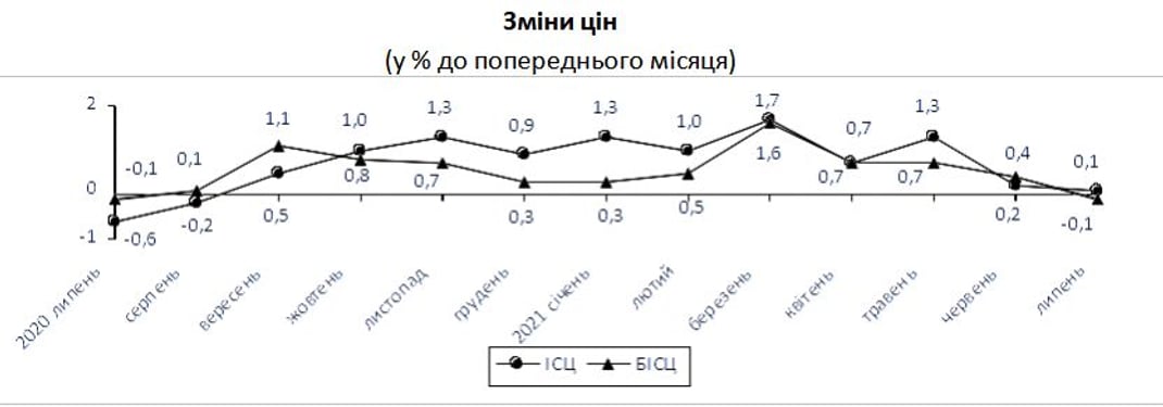 Згідно з даними Держстату, базова інфляція у липні 2021 року, якщо порівняти з червнем, становила -0,1%, з початку року — 4,2%.