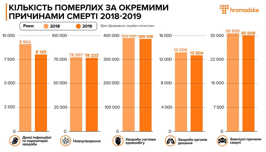 Інсульти, аварії та COVID-19: від чого помирають українці та на якому місці смертність від коронавірусу