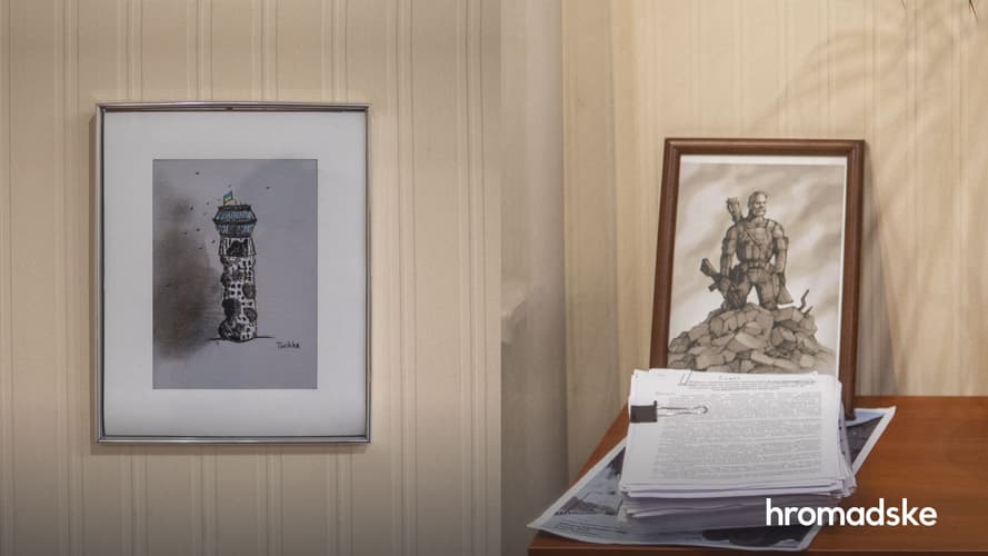 «Дехто питає, чи це моя мама. Це — мама загиблого на Донбасі. То такий проєкт робило “Дзеркало тижня”. Вони всім депутатам і чиновникам розіслали портрети матерів. І от я повісив його у серпні 2019-го, і відтоді він тут. Ще у двох кабінетах бачив такі», — пояснює Грищук. І розказує свою історію про те, як прокурор став кіборгом.