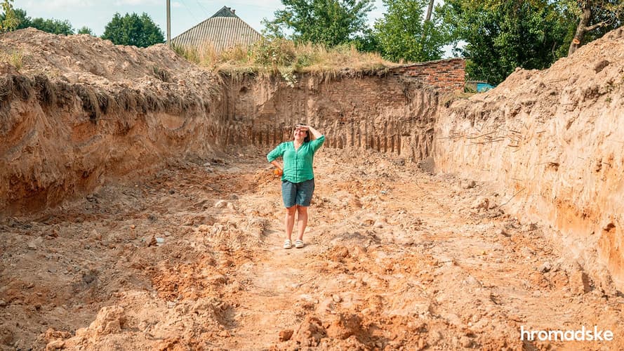 «Подивіться, скільки жертв, скільки всього! Я зараз буду плакати, бо маю внуків», — реагує жінка з ножем у руках — ішла на город, та поруч із руїнами я її зупинила.