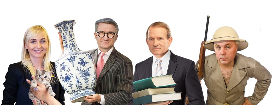 Віктор Медведчук, «ОПЗЖ». Декларація Медведчука справді вражає. Активісти ще довго знаходитимуть там рідкісні предмети старовини та несподівані сюрпризи. Одним з таких стала частка депутата у телеканалі «1+1», яка стала новиною як для самого телеканалу, так і для його головного власника, олігарха Ігоря Коломойського. Крім дорогих годинників та одягу від Gucci, Dolce and Gabbana, Prada, Valentino, Louis Vuitton, Armani, Ralph Lauren, Chanel та інших, у декларації депутата є книжки віком у понад пів тисячоліття. Зокрема, Медведчук задекларував: Фрагмент Біблії Гутенберга (1455 рік), рукописне Євангеліє (15 століття), «Тріодь Постная» (1555 рік), «Заблудівське Євангеліє» (1569 рік), «Апостол» Івана Федорова (1574 рік), «Венеціанський буквар» (1575 року), «Віленське Євангеліє» (1575 року), «Євангеліє Учительне» (1580 року). Є серед книжок Медведчука і «Опис України» Гійома Боплана 1660 року (до речі, цю ж книжку задекларував депутат фракції “Голос” Андрій Осадчук) та «Короткий літопис Малої Росії» Василя Рубана (1777 року). Медведчук володіє рідкісними та інколи унікальними книжками, культовими для історії української та російської літератури: там є й «Енеїда» Івана Котляревського 1798 року, і «Руслан та Людмила» Олександра Пушкіна (1820 року), і «Мертві душі» Миколи Гоголя 1842 року, і «Абетка південноукраїнська» Шевченка (1861 року). Ці книги були видані ще за життя своїх авторів.