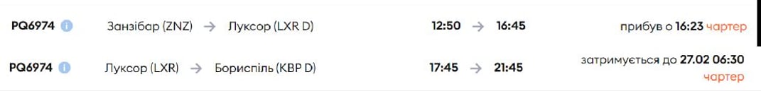 Згідно з розкладом рейсів авіакомпанії, літак прибув із Занзібару до Луксора на 20 хвилин раніше, ніж очікувалося. Зліт планувався за годину після приземлення ㅡ за цей час літак мав дозаправитися для польоту до Києва.