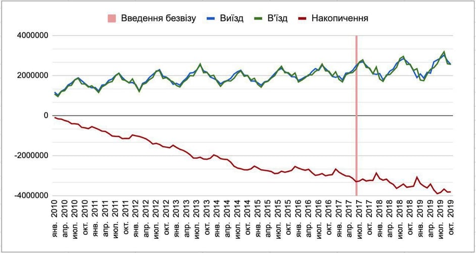 «Те, що мене здивувало. Безвіз істотно не вплинув на підсумкові цифри міграції і сальдо. Я це пояснюю тим, що відбувся перерозподіл — люди стали менше їздити в Росію (принаймні, офіційно), і більше — в Європу», — додав Дубілет.