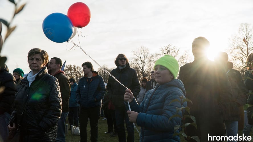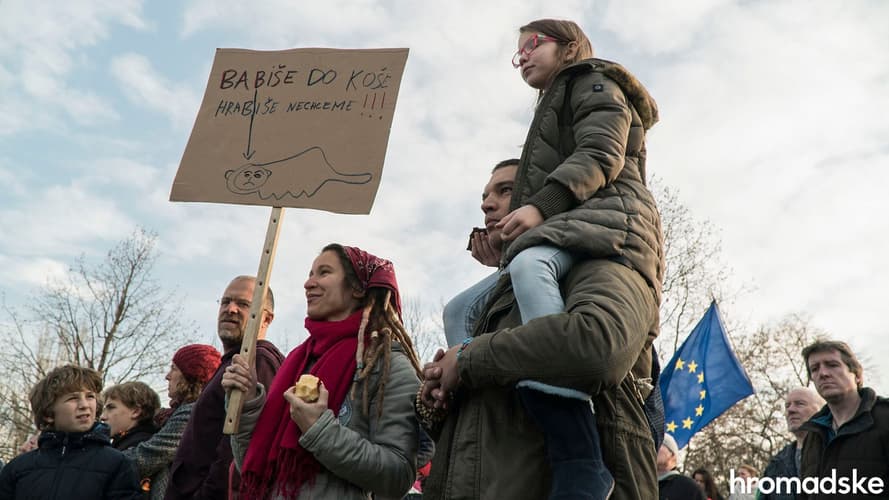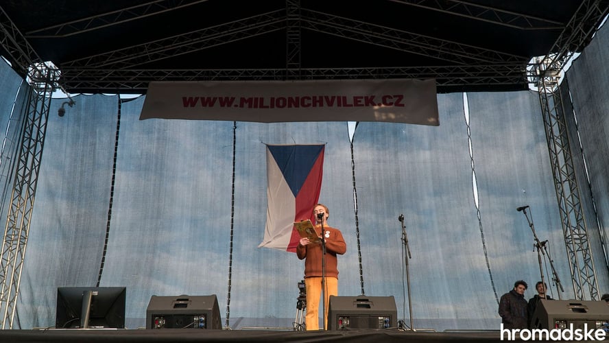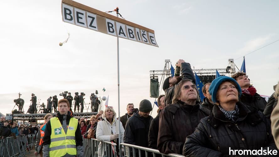 «Я не впевнений, що ці протести призведуть до відставки прем’єр-міністра, але принаймні вони продемонстрували, що така ситуація — це ненормально», — каже Ондржей Соукуп, коли ми дістаємось місця проведення акції 16 листопада. На Летні ніде яблуку впасти. На акцію люди приносять чеські прапори, а також прапори ЄС. Ті, хто не бачать сцени, здираються на дерева поблизу.