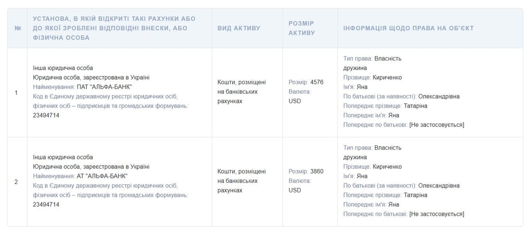 Примітно, що до 2020 року в Кириченків на рахунках було 8,4 тисячі доларів. Це видно з декларації нардепа.