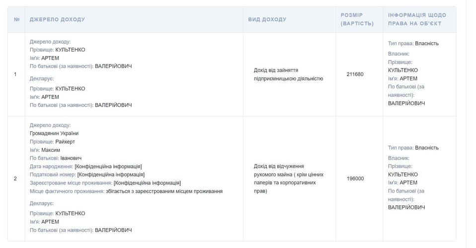 Заступник голови фракції «Слуга народу» Артем Культенко позиціонував себе надзвичайно успішним бізнесменом. Але до обрання в парламент заробляв 17,6 тисячі гривень на місяць. Це видно з декларації народного обранця.