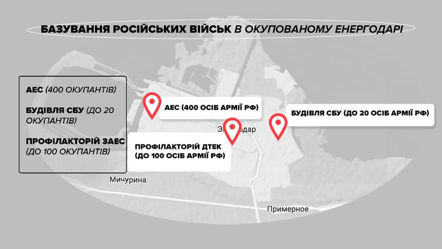 Вони базуються на трьох об'єктах: близько 400 осіб — на атомній електростанції, ще кілька десятків — у приміщенні СБУ, і десь сотня — в будівлі профілакторію.