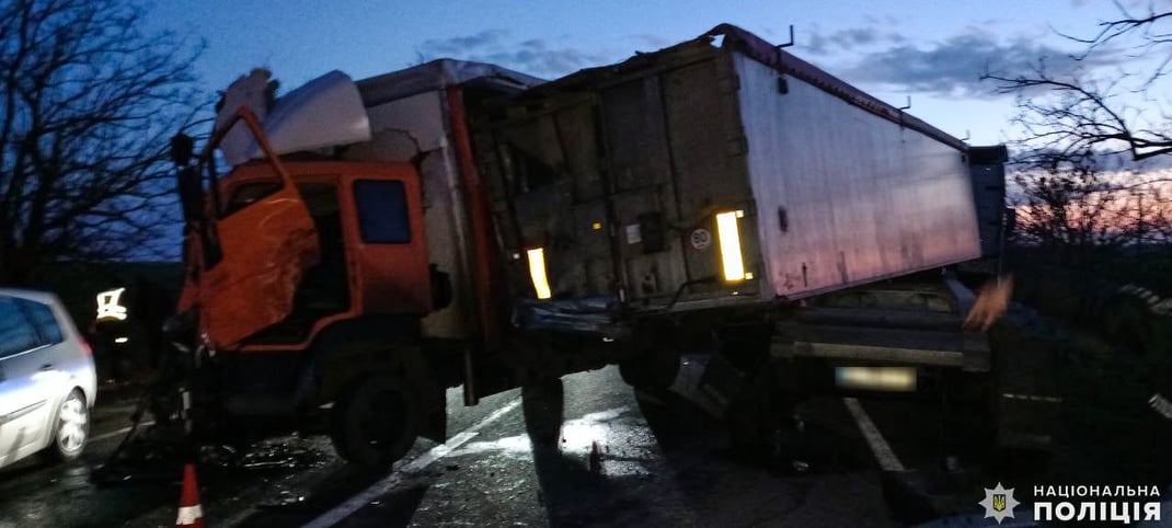 На Миколаївщині зіткнулися чотири вантажівки: одна людина померла, ще одна ㅡ у лікарні