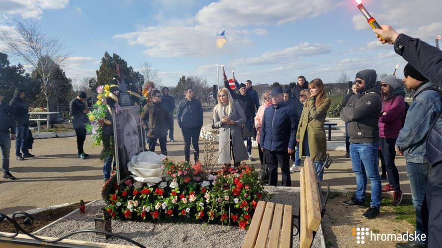 Пізніше учасники акції рушили на цвинтар, де похована Гандзюк. Також на кладовище приїхав батько загиблої активістки.