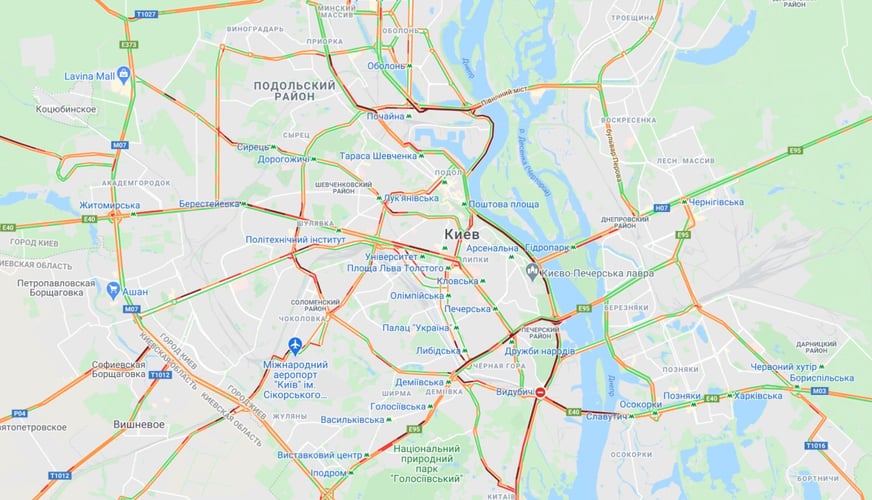 У Києві через ожеледь та низку аварій у столиці практично зупинився рух на десятках вулиць, зокрема на бульварі Тараса Шевченка, бульварі Лесі Українки, Чоколівському бульварі, Набережному шосе, Столичному шосе, вулиці В’ячеслава Чорновола, Січових Стрільців, Володимирській, Олени Теліги, Олександра Довженка, Вадима Гетьмана, проспекті Перемоги, проспекті Лобановського, Голосіївському проспекті, Кільцевій дорозі, мосту Метро, Броварському проспекті, бульварі Дружби народів, Південному мосту та ін.