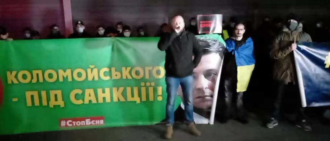 Зокрема, там можна було побачити плакати про 111 статтю ККУ (Державна зрада) та «Коломойського під санкції», а самі учасники акції вимагали розслідування справи щодо «вагнерівців».
