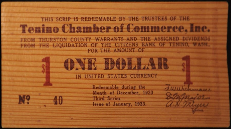 Містечко Теніно в американському штаті Вашингтон почало друкувати власну валюту — дерев’яні долари. Так там намагаються подолати наслідки економічної кризи, викликаної пандемією коронавірусу.