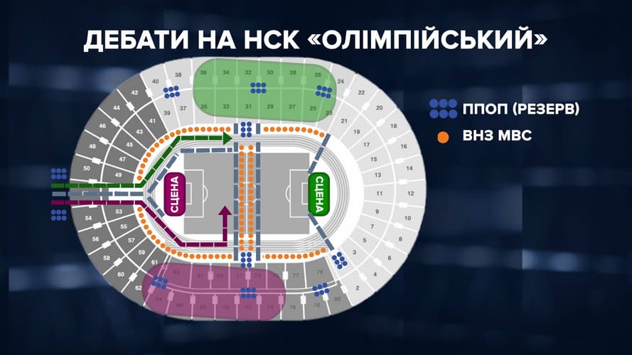 На стадіоні «Олімпійський» вже встановлено дві сцени. Як повідомляло Радіо Свобода, цим займалися люди зі спеціальними перепустками «95 квартал». У Патрульній поліції Києва Громадському повідомили, що фан-зони обох кандидатів будуть розділені.