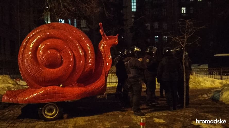 Деякі учасники протесту спробували прорвати кордон поліції, у відповідь силовики застосували сльозогінний газ. З боку протестувальників також летіли сніжки. Крім того, був спалений один із шоломів силовиків.