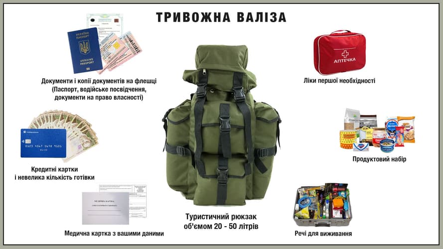 Тривожна валіза. Що до неї покласти, щоб вижити