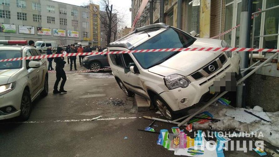 Під час спроби втечі від нападників чоловік на своєму автомобілі виїхав на східці.