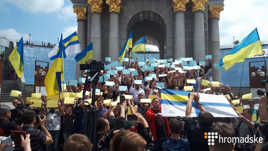 На Майдані Незалежності у Києві люди вийшли на акцію, аби підтримати 24 українських моряків, яких захопили росіяни під час виходу з Керченської протоки 25 листопада 2018 року.