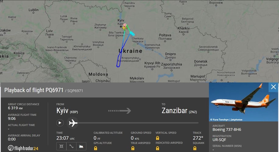 Літак авіакомпанії SkyUp, який потягом трьох днів не міг забрати українських туристів з Занзібару і врешті повернув їх до Києва, не зміг знову вилетіти до острова. Після вильоту з аеропорту «Бориспіль» у нього виявили технічні несправності.